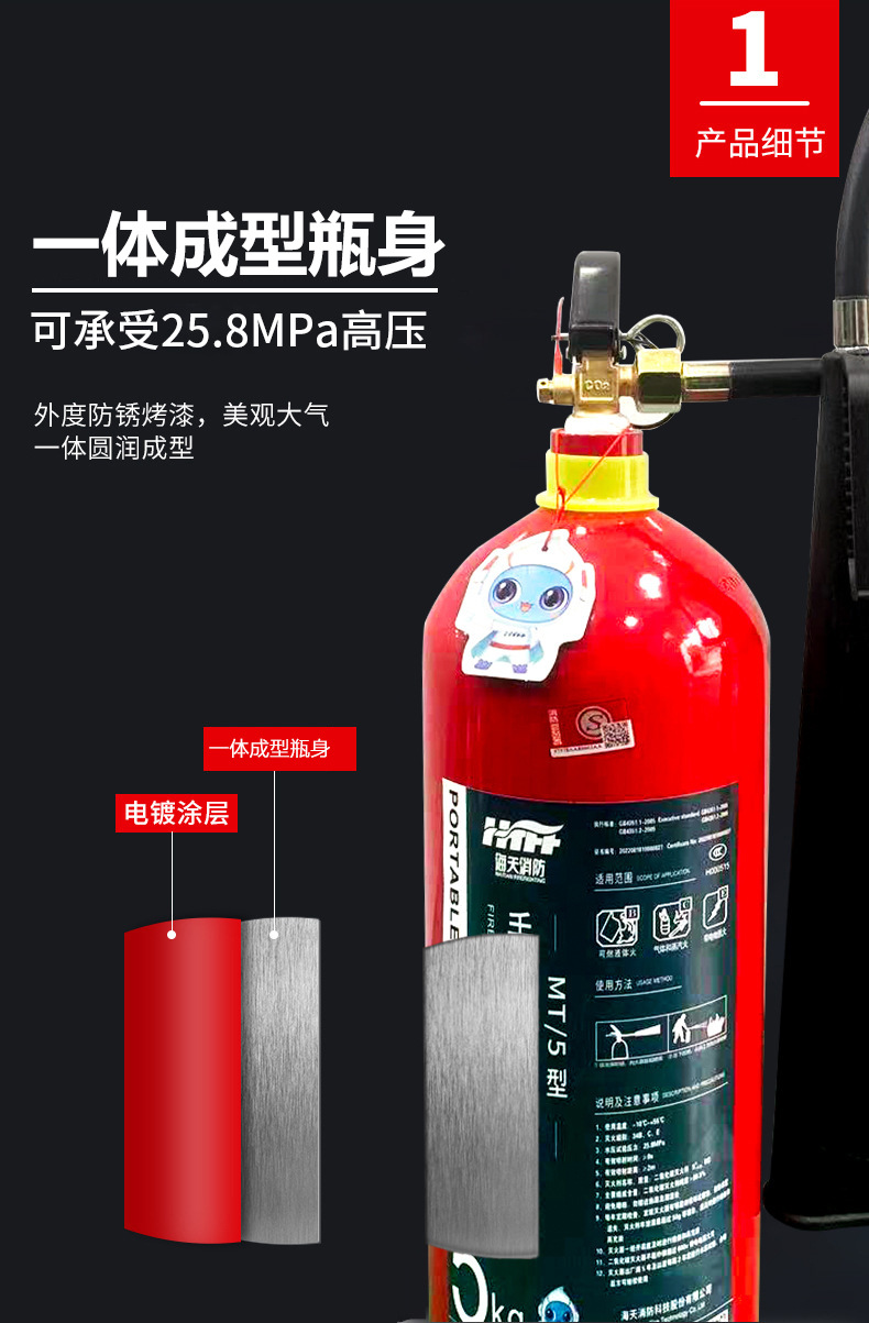 - 油类、化学液体储存区:这些地方存放的液体易燃,一旦发生火灾,火势蔓延迅速。二氧化碳灭火器可以迅速降低火场温度,隔绝空气,从而扑灭火源。